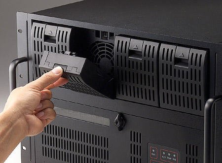 ♦支持熱插拔的SAS / SATA硬盤托架,冷卻風(fēng)扇易于維護(hù),配有冗余電源